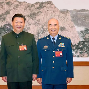 2017年10月26日,习近平同志出席军队领导干部会议时与许其亮同志合影留念。新华社发