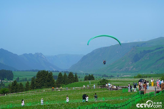 新疆伊犁哈萨克自治州尼勒克县,唐布拉百里画廊游人如织。