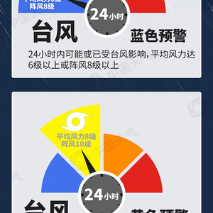 央视网消息:据中国天气网消息,今天(6月11日)8时,今年第1号台风“蝴蝶”生成,预计它将在13日两次登陆华南沿海。为此,中央气象台发布今年首个台风预警。当台风来临时,气象部门都会发布相应的预警信号。中央气象台发布的台风预警信号分为四级,预警信号颜色由浅到深,代表影响程度和防御等级越来越高。你知道这些不同级别的预警信号有什么不同含义吗?一起来了解一下。