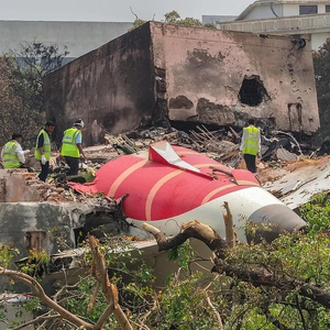 现场传回的画面显示,飞机起飞后短暂爬升,不久便开始下降,最终坠落在机场附近的一片建筑群中。坠机地点火光冲天,并引发明显爆炸,现场建筑物遭到波及损毁,一些飞机残骸碎片镶嵌其中。