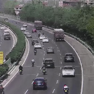 2025年4月22日,一段4分26秒的视频在短视频平台传播。画面中,多辆摩托车在高速公路上交替追逐,持续加速,其中一辆摩托车的仪表盘指针始终维持在299km/h的最高刻度线上,发布者配文:“国外安全道路拍摄请勿模仿。”画面中的道路指示牌陆续出现“华胥”“蓝田”“商洛”等字样。
