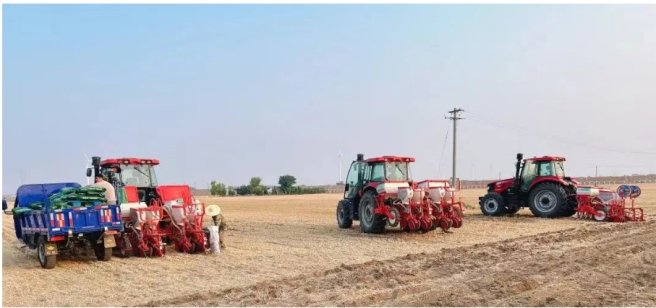 温县中心跨区域调拨6台播种设备同时作业,先进农机较普通机械效率提高一倍,仅用10余天就完成6000余亩玉米地的全部播种,较计划提前一周,出苗时间也较往年提早10天。同时,温县中心为服务玉米地块配套铺设水肥滴灌设备,对比传统漫灌及大喷灌,滴灌分区作业每日可浇灌35至40亩,灌溉效率显著提升。