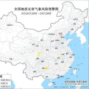 央视网消息:自然资源部与中国气象局6月28日18时联合发布地质灾害气象风险预警: