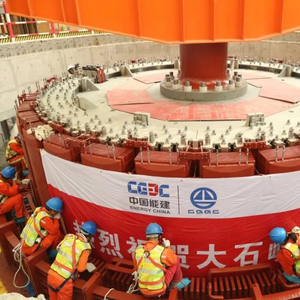 6月26日,由中国能建所属葛洲坝集团投资建设的世界最高混凝土面板堆石坝——新疆大石峡水利枢纽工程首台机组转子成功吊装,项目正式进入机组总装阶段,向着全面投产发电迈进。