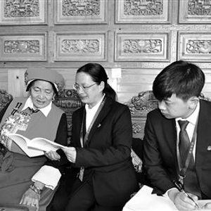 图为王燕琳(中)正在向群众讲解巡察工作的目的和意义,收集群众的意见建议。何维龙 摄