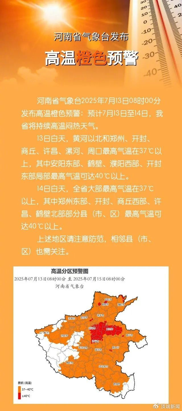 高温橙色预警!河南高温热浪已至,本周多地将遇40℃+!