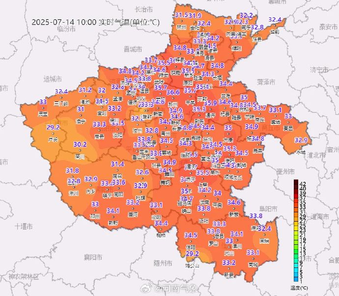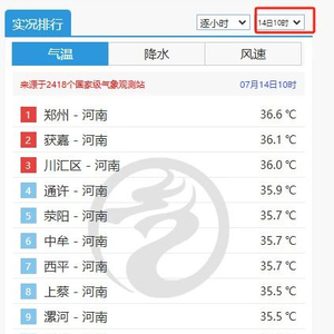 今天上午10时,全国实时气温排行榜显示,河南多地气温领跑全国,包揽榜单前十位!