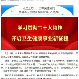 央视网消息:7月14日,辉县市卫生健康委员会就辉县市人民医院给患者发放过期药品情况发布通报:7月13日,有患者家属反映辉县市人民医院给患者发放过期药品引发质疑。辉县市卫健委高度重视,立即成立调查组开展全面调查。