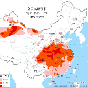 央视网消息:中央气象台7月15日18时继续发布高温橙色预警:预计7月16日白天,陕西关中至黄河下游以南大部地区有35℃以上的高温天气;其中,陕西中南部、山西南部、山东西部、河南、安徽、江苏大部、上海大部、湖北、湖南、江西西部、浙江中北部、四川盆地、重庆、贵州东北部以及内蒙古西部、新疆沿天山地区和南疆盆地等地的部分地区最高气温37~39℃,陕西关中和汉中、山西西南部、河南中南部、湖北北部和西部、重庆北部、四川盆地南部、内蒙古西北部、新疆吐鲁番盆地和南疆盆地部分地区可达40℃以上。