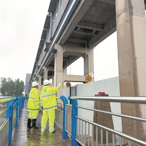 日前,中国南水北调集团东线有限公司徐州分公司工作人员对大沙河闸进行安全巡查。 中国南水北调集团供图