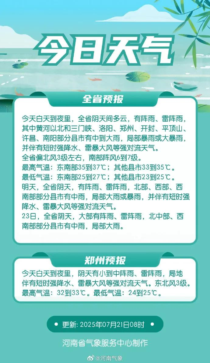 昨夜新乡开封平顶山等地出现大到暴雨局地大暴雨,今日我省北中部西南部局地仍有强对流天气。
