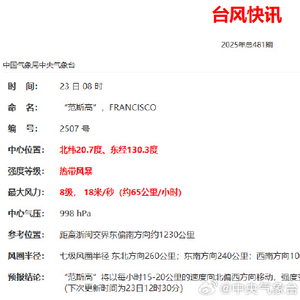 今年第7号台风“范斯高”生成 中心附近最大风力8级