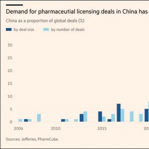 报道介绍,所谓授权交易,其模式一般是:跨国公司向中国药企支付一笔费用,获得其研发的早期药物在中国以外市场的独家销售权;如果该药物通过临床试验,中国公司则将获得更多收益。报道援引报告称,今年上半年,中国药企在这类与跨国药企的授权合作中,占全球交易总数的18%、交易金额的32%,均创下纪录。