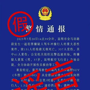 今天,昆明市公安局五华分局发布警情通报。近日,有网民在互联网上传播虚假“警情通报”,造谣传播在昆明发生一起致多人死伤的重大恶性案件等不实信息,引发大量网民讨论。公安机关迅速核查处置。