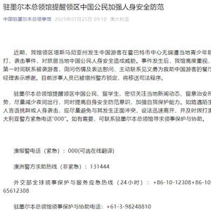 7月25日,中国驻墨尔本总领馆提醒领区中国公民加强人身安全防范: