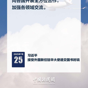 7月25日,国家主席习近平在北京人民大会堂接受16位驻华大使递交国书。仪式结束后,习近平在北京厅对使节们发表讲话。习近平指出——