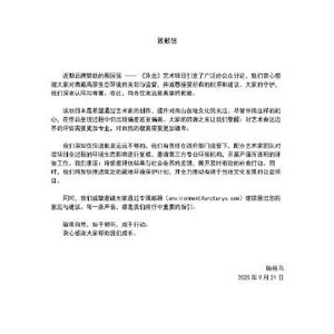 9月21日,始祖鸟发布致歉信称,近期品牌赞助的蔡国强 --《升龙》艺术项目引发了广泛的公众讨论,始祖鸟衷心感谢大家对青藏高原生态环境的关切与监督,并诚恳接受所有的批评和建议。大家的守护,始祖鸟深表认同与尊重。在此,向各位表达最真挚的歉意。