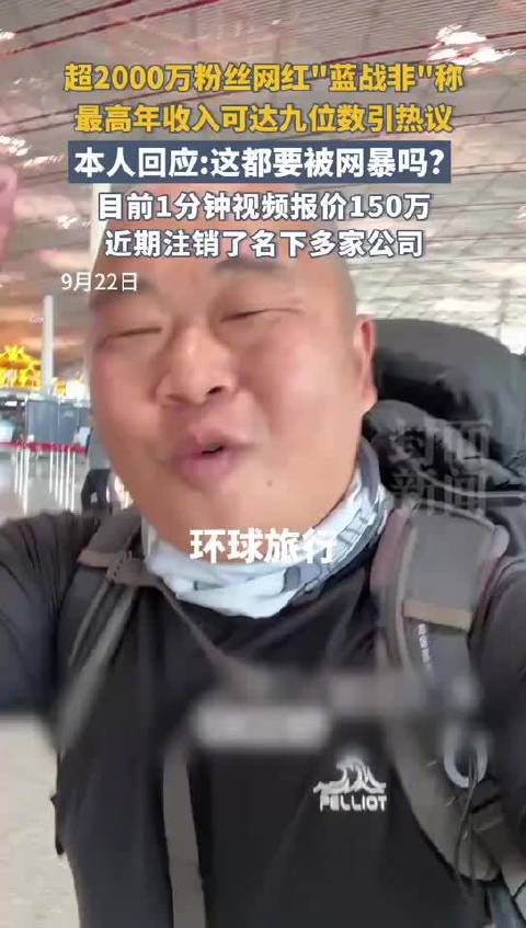9月25日,千万网红“蓝战非”的抖音、小红书账号被禁止关注。此前,蓝战非”在直播中透露收入潜力及资产状况引发热议。他自称若全力投入商业化运作,年收入可达九位数。22日中午,“蓝战非”发文称:“好久没玩微博了,这句话我是很久之前讲的,现在空降热搜第一,我这都要被网暴吗?”