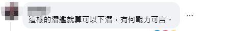 对于顾立雄的说法,有岛内网民表示,“这样的潜艇就算可以下潜,有何战力可言”“合理怀疑是诈骗钱坑”。