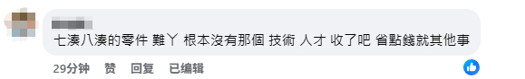 有网民称,“七凑八凑的零件,根本没有那个技术、人才,收了吧,省点钱做其他事”。