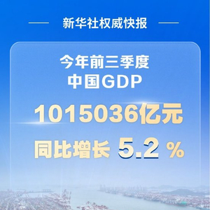 2025年前三季度,中国国内生产总值(GDP)1015036亿元