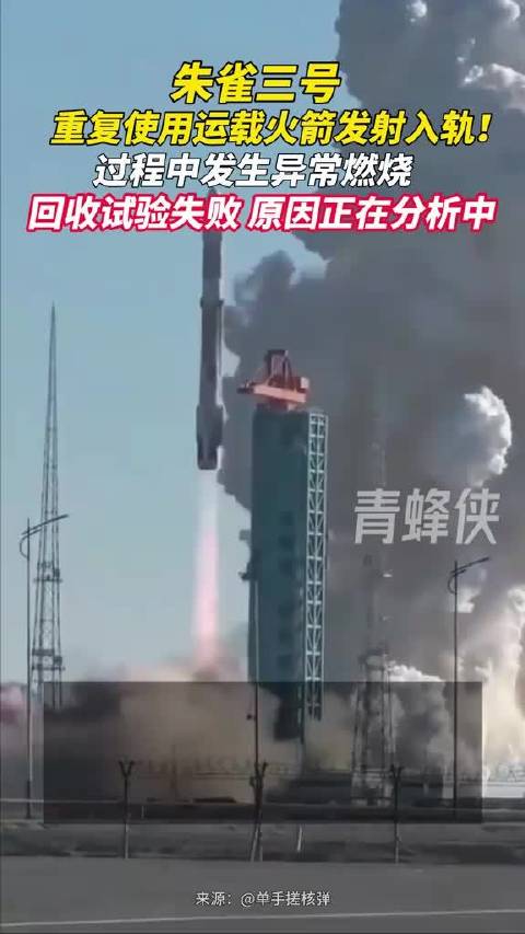 朱雀三号首次挑战可重复使用火箭入轨回收,航天专家:火箭回收是大趋势,迟早会成功