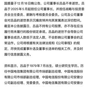 国盾量子董事长吕品去世,警方通报