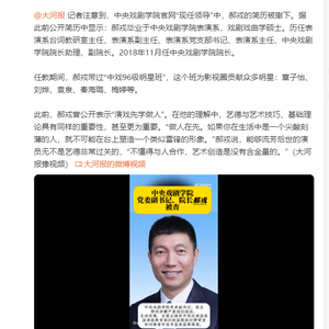 [郝戎曾说演戏先学做人] 12月19日,官方通报中戏院长郝戎被查,目前正接受中央纪委国家监委驻教育部纪检监察组纪律审查和河南省许昌市监委监察调查。
