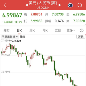 离岸人民币兑美元升破7.0大关 为2024年9月以来首次 今年以来累计升值4.6%