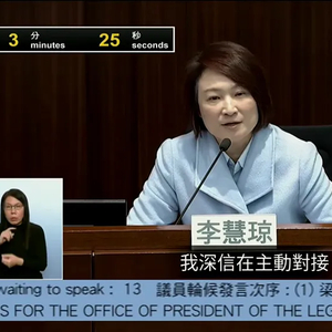 李慧琼发言时表示,如当选立法会主席,会建立议会新形象,加强议会的外联内通,她亦会定期会与不同的板块议员沟通,向行政机关表达大家的心声。