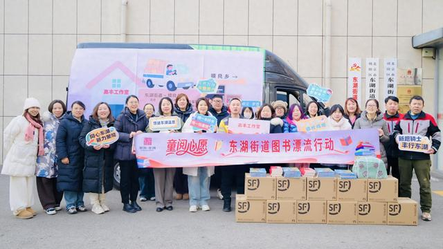 “童阅心愿”图书漂流行动发车仪式在东湖街道党群服务中心举行,顺丰速运的快递小哥们将这批图书打包、装车。糯良乡相关负责人通过视频连线,向捐赠者们表达了衷心的感谢:“感谢大家对边疆教育事业的关心与支持,这份跨越千山万水的爱心,将为孩子们点亮更多知识的灯。”