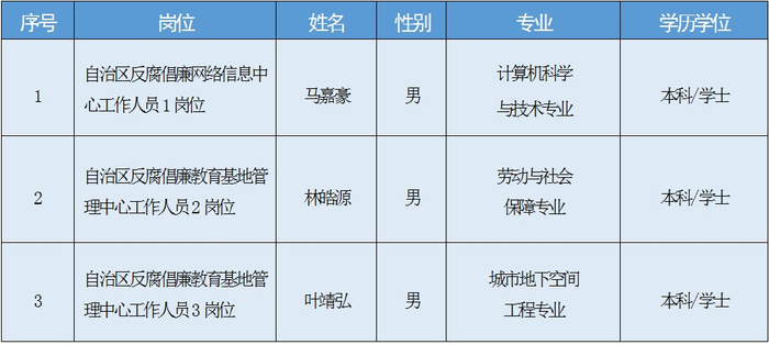 广西壮族自治区纪委监委直属事业单位2025年下半年公开招聘拟聘用人员公示