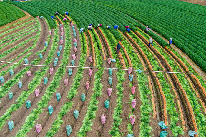 立春将至,宾阳县王灵镇胡萝卜迎来采收旺季。群众趁着晴朗天气,加紧进行胡萝卜采收、分拣、装袋,空气中洋溢着丰收的喜悦。(鹿寨县纪委监委供 刘克林/摄)