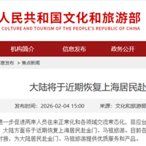 为进一步促进两岸人员往来正常化和各领域交流常态化,回应台湾民众和旅游业界热切期盼,增进两岸同胞利益福祉,大陆方面将于近期恢复上海居民赴金门、马祖旅游。目前各项工作正在积极筹备中,希望两岸旅游业界加强沟通对接,为大陆居民赴金门、马祖旅游提供优质服务和产品。