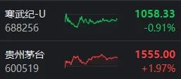 这天盘中,贵州茅台最低触及1322.01元/股,尽管仍是“股王”,但股价也只比寒武纪高出几十块,有些摇摇欲坠。