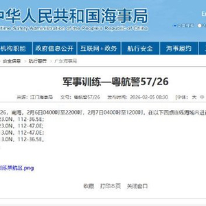 据中国海事局网站消息,江门海事局发布航行警告,2月6日4时至22时,2月7日4时至12时,南海部分海域进行军事活动,禁止驶入。