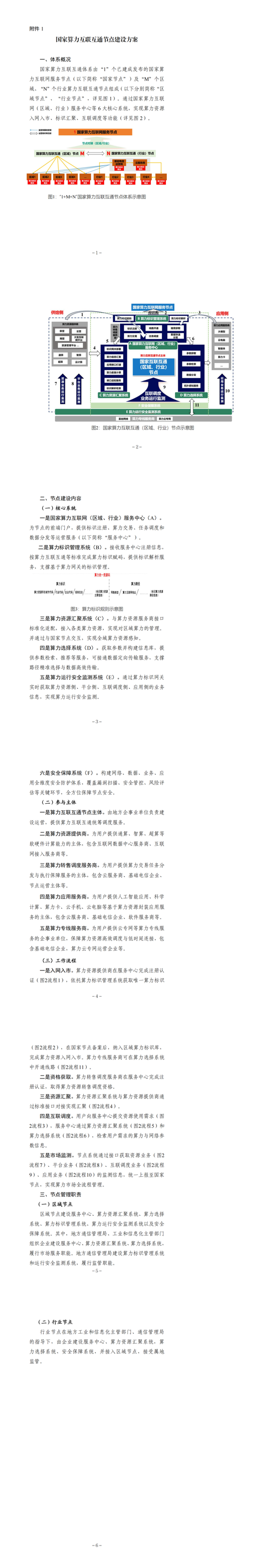 国家算力互联互通节点体系由“1”个国家算力互联网服务节点(以下简称国家节点,已建成发布)及“M”个区域、“N”个行业节点组成。