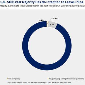 绝大多数受访企业(93%)计划继续深耕中国市场。中国德国商会报告截图
