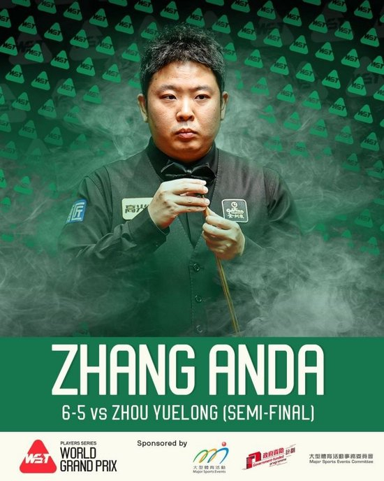 周跃龙致命失误!张安达决胜局逆转 6-5晋级斯诺克世界大奖赛决赛