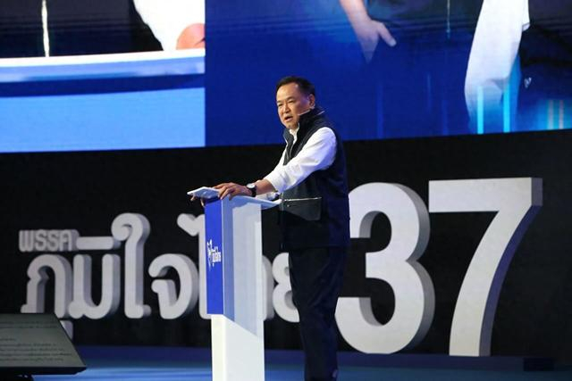 2月6日,泰国看守总理、自豪泰党总理候选人阿努廷在曼谷诗丽吉王后国家会议中心发表竞选演讲。新华社发