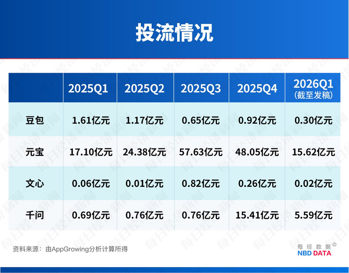 这背后也少不了资本的驱动。据AppGrowing估算,元宝2025年投流高达150亿元,其中,单第三季度投流高达57.63亿元。
