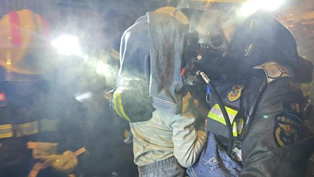 “还有人!”“快点!”“水枪掩护”……救援现场一片嘈杂,嘶哑却响亮的救援指令声此起彼伏。5时32分,搜救组在建筑一层西北角的卧室内发现了其余4名被困人员,其中包括两名儿童,消防员第一时间将逃生面罩戴在两个男孩头上,随后将两人安全救出。