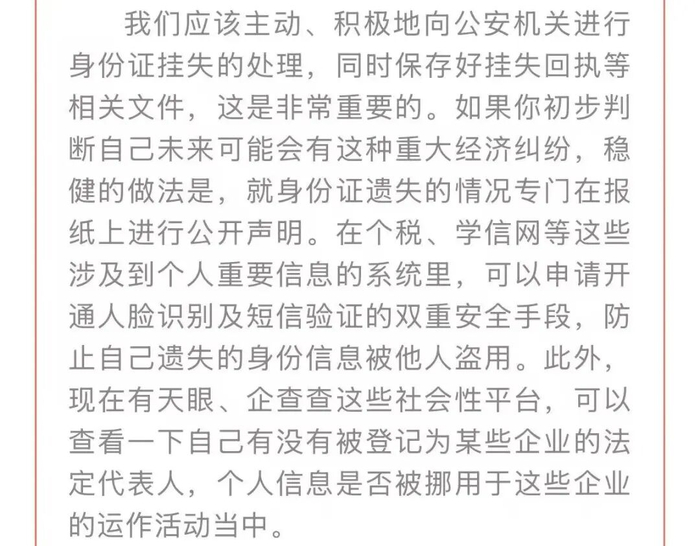 每个公民都可能会遗失身份证,专家提醒: