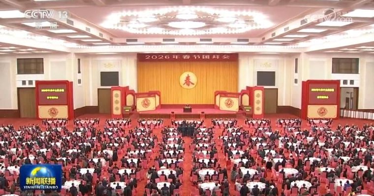 中共中央、国务院14日上午在人民大会堂举行2026年春节团拜会。中共中央总书记、国家主席、中央军委主席习近平发表讲话,代表党中央和国务院,向全国各族人民,向香港特别行政区同胞、澳门特别行政区同胞、台湾同胞和海外侨胞拜年。