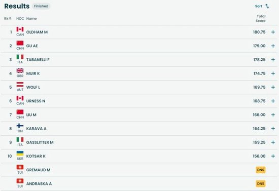 直播吧02月17日讯 米兰冬奥会自由式滑雪女子大跳台决赛,谷爱凌第三跳获得89分,最终总分179分,获得银牌!加拿大选手奥尔德汉姆夺得金牌,意大利选手塔巴内利获得铜牌。