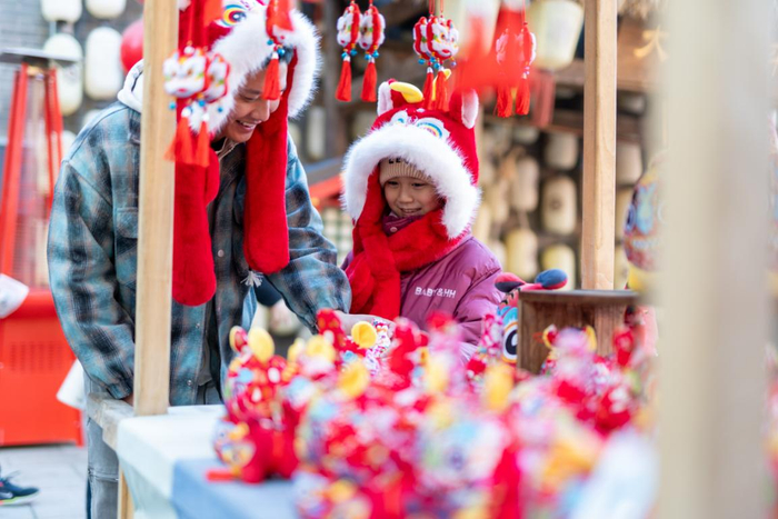 新春时节,唐山市丰南区河头老街景区人气旺盛,游客漫步街巷、选购年俗商品,在热闹氛围中感受文旅消费热潮与浓浓年味。(唐山市丰润区纪委监委供 朱大勇 摄)