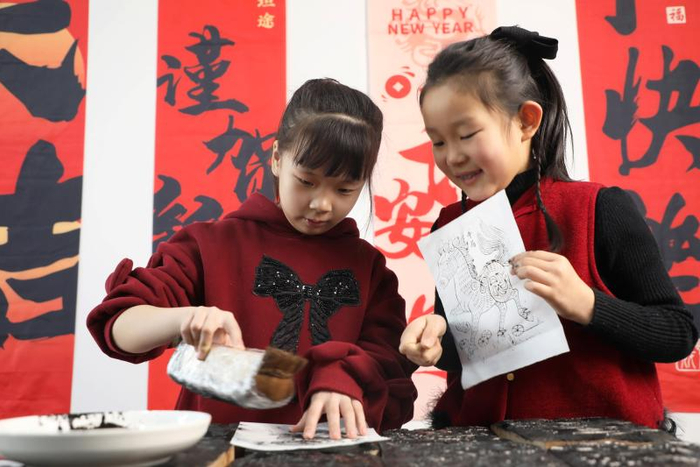 近日,唐山市丰润区新华书店开展“非遗宣廉”主题活动,邀请非物质文化遗产代表性传承人传授木版年画制作技艺,让小朋友感受传统文化的魅力,享受快乐假期。(唐山市丰润区纪委监委供 朱大勇 摄)