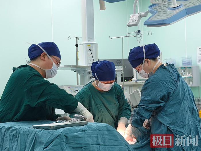 产科副主任医师杨雯(中)带领团队进行剖宫产手术(记者刘迅 摄)