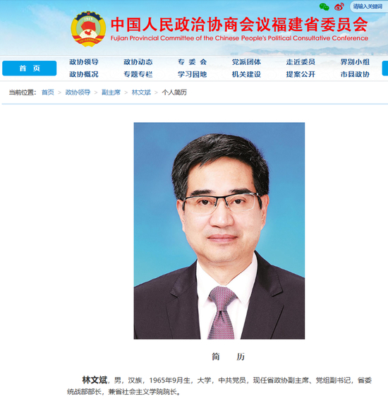 福建省政协官网日前更新显示,今年1月当选福建省政协副主席的林文斌,已卸任福建省委常委。