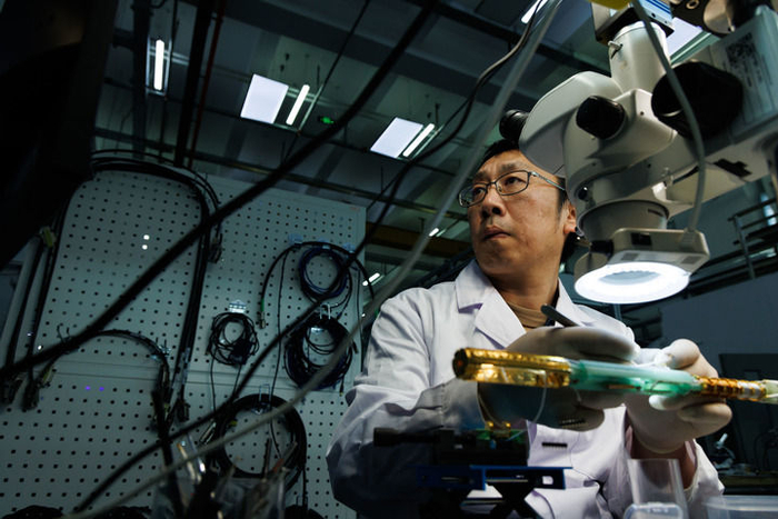 在位于北京怀柔的中国科学院物理研究所综合极端条件实验装置极低温强磁场量子振荡实验站,实验站负责人、副研究员李岗在准备实验测量杆(2026年1月26日摄)。新华社记者 金立旺 摄